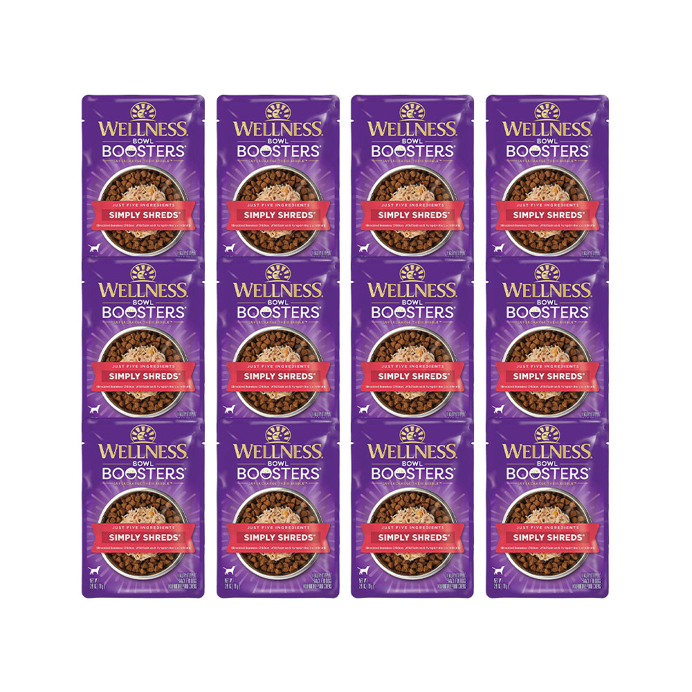 WELLNESS Core Simply Shreds are made with only five simple, natural ingredients, making them a perfect choice for topping or snacking. These grain-free and filler-free shreds are a great source of pure protein and fatty acids from chicken, salmon or beef, providing your pet with the nutrients they need to stay healthy and active!