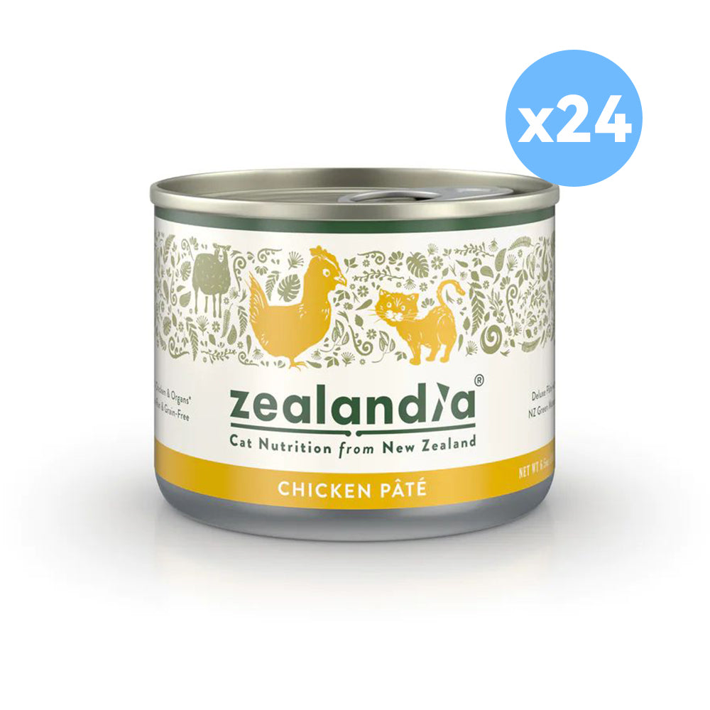 ZEALANDIA Chicken Pate Wet Cat Food 185g is a grain-free cat canned food made with delicious blended meats from free-range poultry. The real chicken and lamb organs will support energy production for a lean physique as well as help maintain strong teeth and healthy gums. Promote heart and brain health as it nourishes circulation, and immune deficiencies or just improves cognition for a feline to feel great! Along with being suitable for reduced mobility cats, this tasty blend is also good at conditioning joints which means more time on the sofa with our beautiful furry friends. More than that though, ZEALANDIA optimizes gut function meaning increased digestibility!