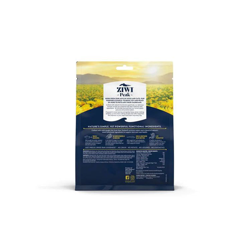 The ZiWI Peak Raw Superboost with Mackerel Freeze-Dried Dog Food 114g is packed with wild-caught mackerel and omega-3-rich New Zealand green mussels and abalone, along with dandelion greens to support skin and coat health and live probiotics to support digestion.