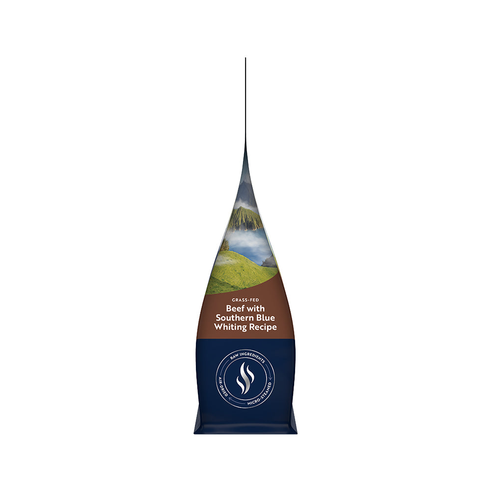 Beef, Beef Lung, Whole Southern Blue Whiting, Beef Tripe, Beef Liver, Beef Heart, Beef Plasma, Beef Spleen, Beef Fat, Beef Bone (Source of Glucosamine and Chondroitin Sulfate), Dried Yellow Peas, Dried Green Lentils, Beef Cartilage, Lecithin, Dried Quinoa, Dried Apple Pomace, Natural Flavour, Minerals (Dipotassium Phosphate, Magnesium Sulfate, Zinc Amino Acid Complex, Copper Amino Acid Complex, Manganese Amino Acid Complex, Sodium Selenite), Choline Chloride, Dried Kelp, Preservative (Citric Acid, Mixed Tocopherols), DL-Methionine, Taurine, Vitamins (Vitamin E Supplement, Thiamine Mononitrate, Niacin Supplement, Pyridoxine Hydrochloride, Riboflavin, Folic Acid, Vitamin D3 Supplement), Rosemary Extract.