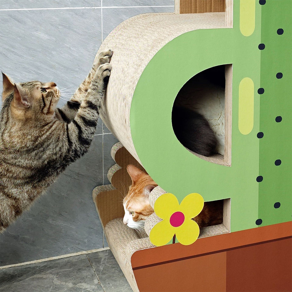 Crafted from high-quality corrugated cardboard, it supports natural scratching behaviour, promoting healthier claws while protecting your furniture from damage. Its tall, space-saving design is perfect for multi-cat households or energetic climbers, and its cactus theme adds a quirky flair to your home décor.