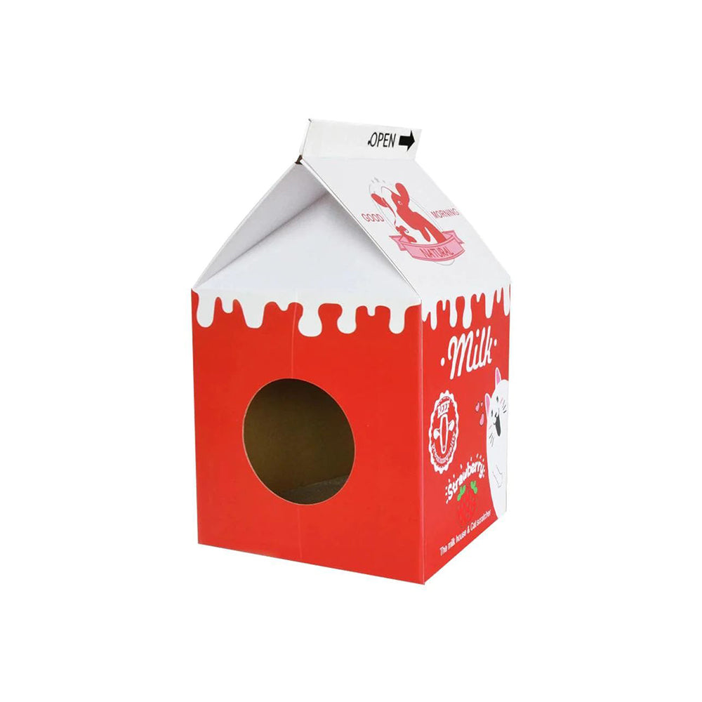 The 'premium beef' logo on the strawberry milk graphic is a little odd but that's on all the colours and not a big deal, just an odd graphic. It's the cheapest cat bed I ever purchased him and it looks great. I'm going to buy the other two colours just so I have a little bed option in different sections of the house, for the price these are fantastic! At the time of writing this Petso is also the best place to buy these cat milk cartons because of the price. I can not believe other sites are trying to sell these upwards of $40, I saw a similar one for almost $80! that's crazy because it's just a fancy cardboard box after all, so I'm very thankful Petso sells them at this great price.