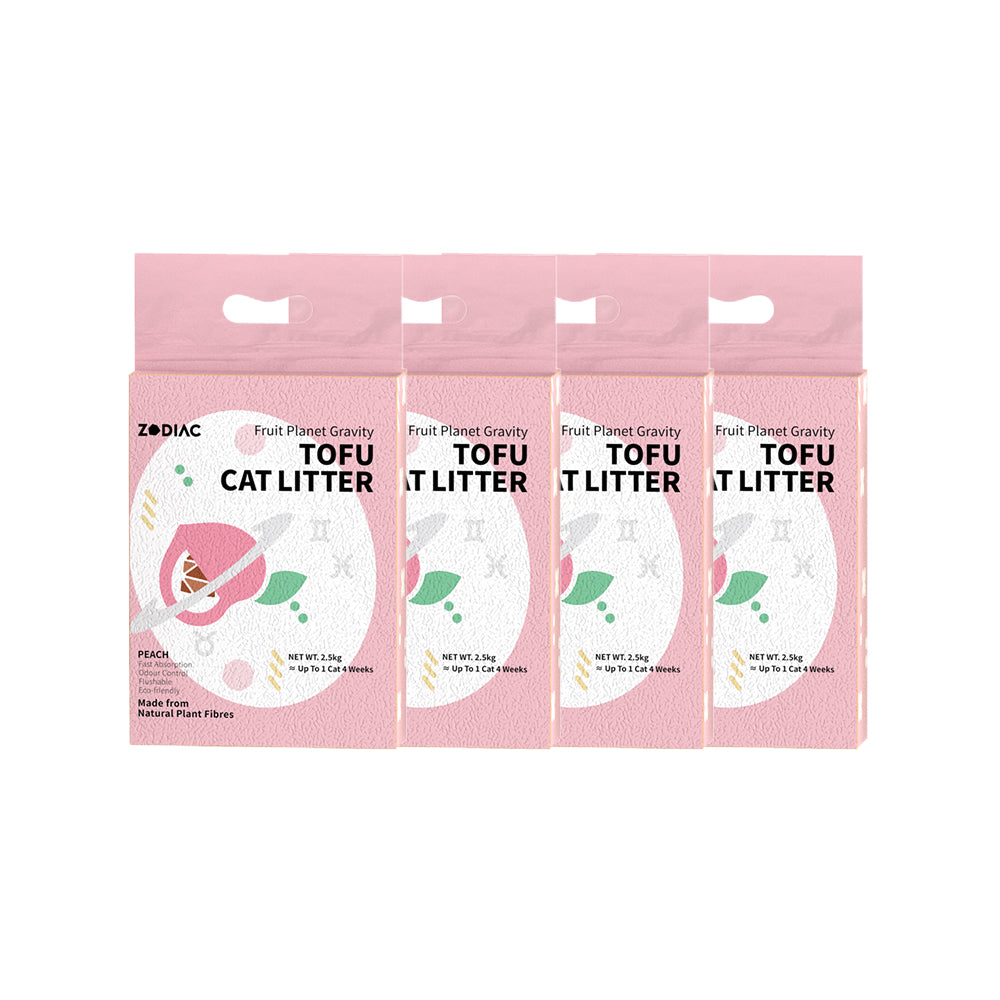 ZODIAC Peach Fruity Tofu Cat Litter 2.5kg is a peach blossom-scented cat litter that is 99.9% dust-free and hypo-allergenic, making it perfect for households with multiple cats. Plus, the medium-grain particle size makes it ideal for clumping, trapping odours, and preventing moisture for easy-peasy scooping and clean-up.