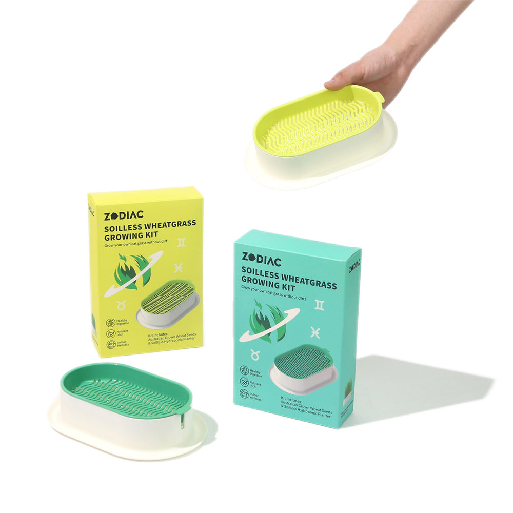 ZODIAC Soilless Wheatgrass Growing Kit - Yellow includes Australian-grown wheat seeds and a soilless hydroponic planter, making it easy and mess-free to grow wheatgrass indoors. Wheatgrass is packed with essential vitamins and minerals that can aid in healthy digestion, support the immune system, and even help with detoxification.
