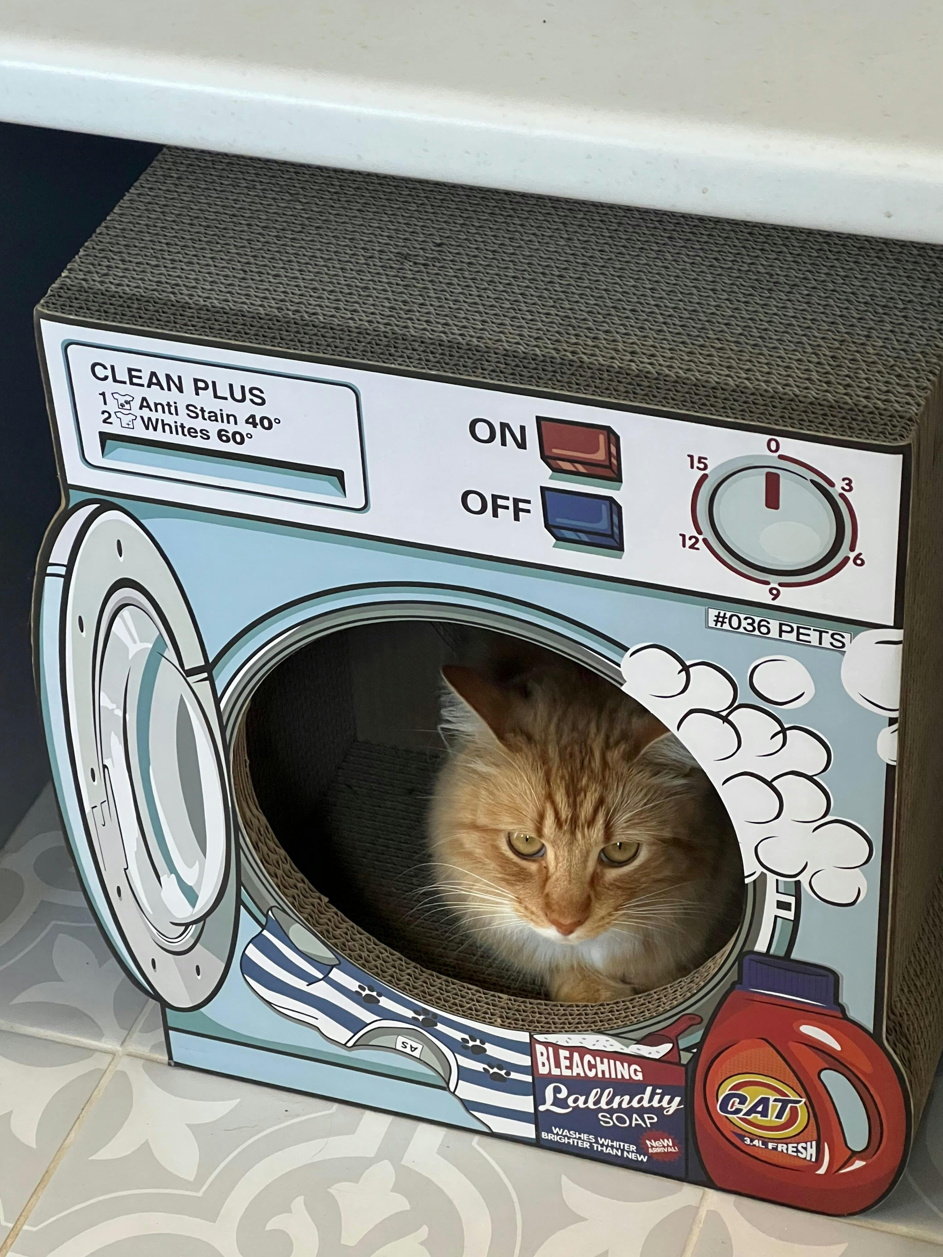 The ZODIAC Blue & Grey Washing Machine Corrugated Cat Scratcher is the perfect way to protect your belongings and keep your feline friend entertained at the same time! A sturdy scratching post made entirely from quality corrugated cardboard, making it durable, eco-friendly and long-lasting. It's even SAFE TO USE, as it's non-toxic and environmentally friendly. Plus, it's easy to assemble and if you're looking for a stylish piece of furniture that will also keep your cat happy, look no further here!